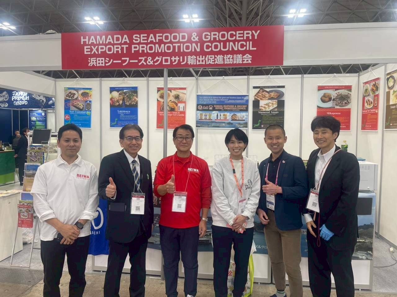 海外バイヤーを中心に3日間で200名程度のお客様と煮あなご寿司、たこ照焼商品、あなご出汁などを試食頂きながら商談を行いました。株式会社ダシーズファクトリーより松本薫さんが浜田シーフーズブースに来て頂きました。